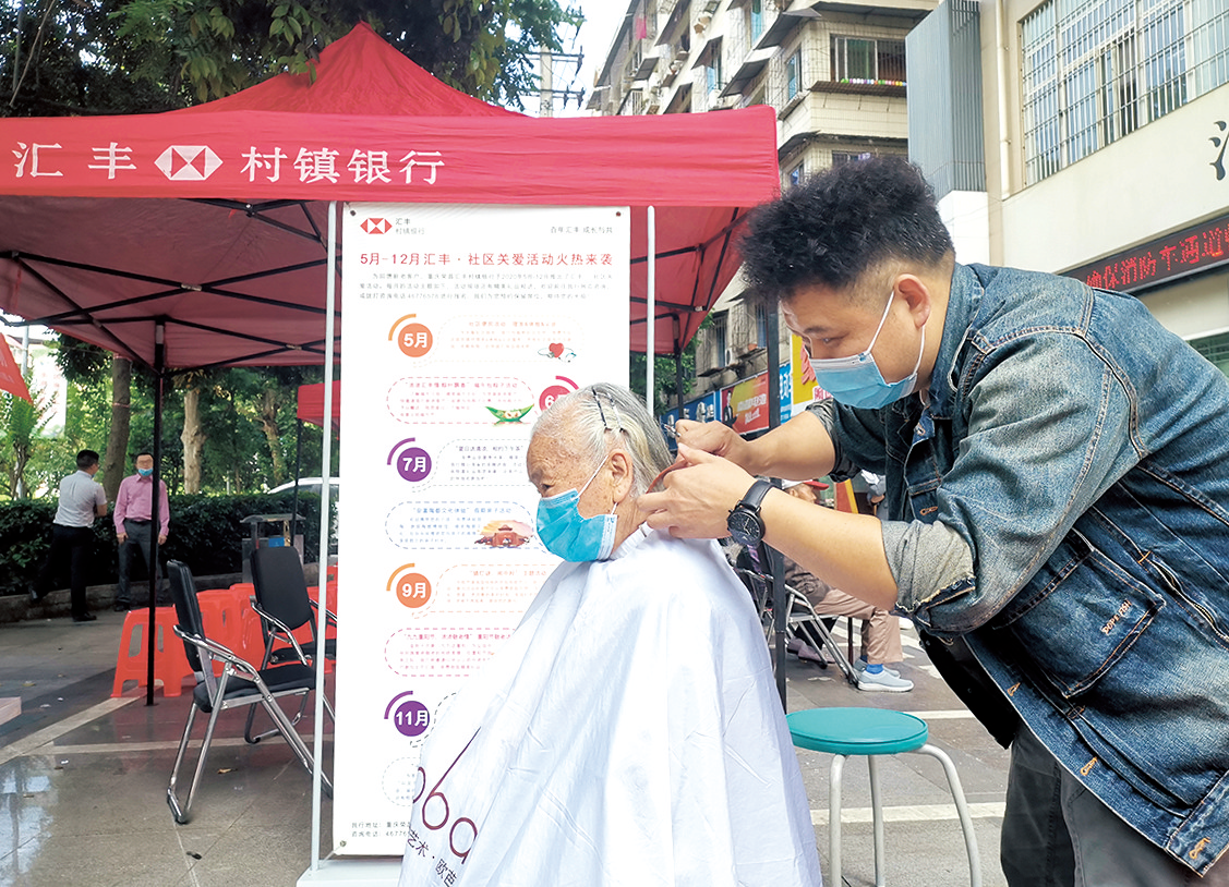 近日,荣昌汇丰村镇银行举行“新时代文明实践志愿服务驿站”首场社区关爱活动,邀请专业理发师及医务人员,免费为板桥社区100余名居民提供测量血压、血脂,义务理发,咨询理财业务等暖心服务。