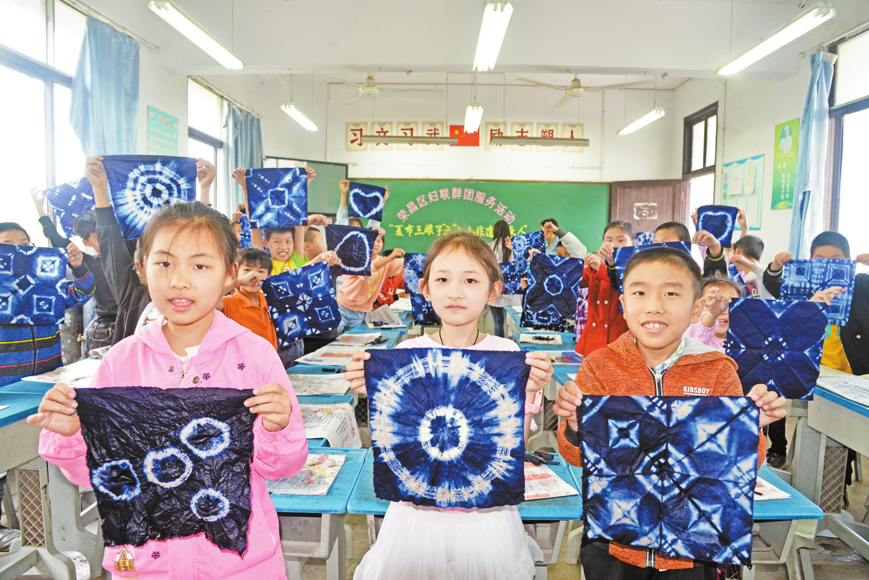 近日,区妇联联合加合夏布,组织开展“夏布小小传承人”体验进学校活动,为古昌镇盛家沟完全小学33名学生带来了一场妙趣横生的夏布扎染体验课。