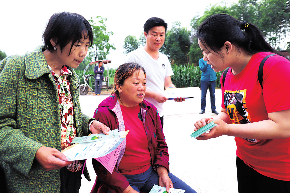 仁义镇组织志愿者进村入户,向就业困难群体宣传就业扶贫政策