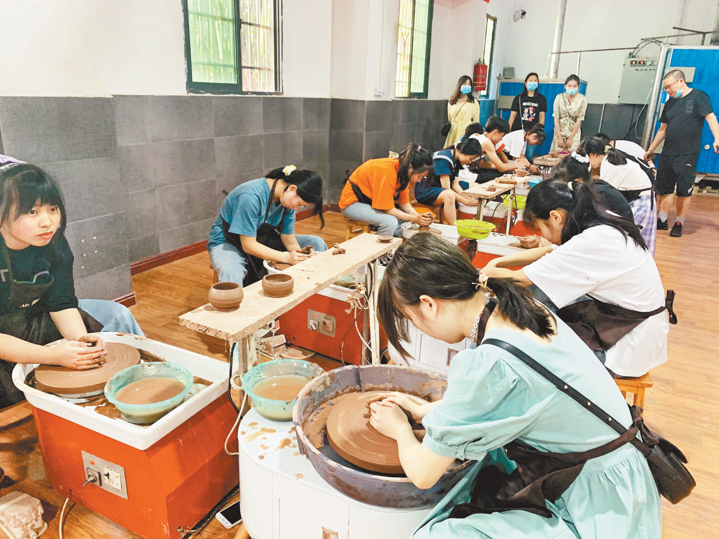 6月18日,荣昌“安北陶艺村”,众多学徒和爱好者在练习制作荣昌陶。