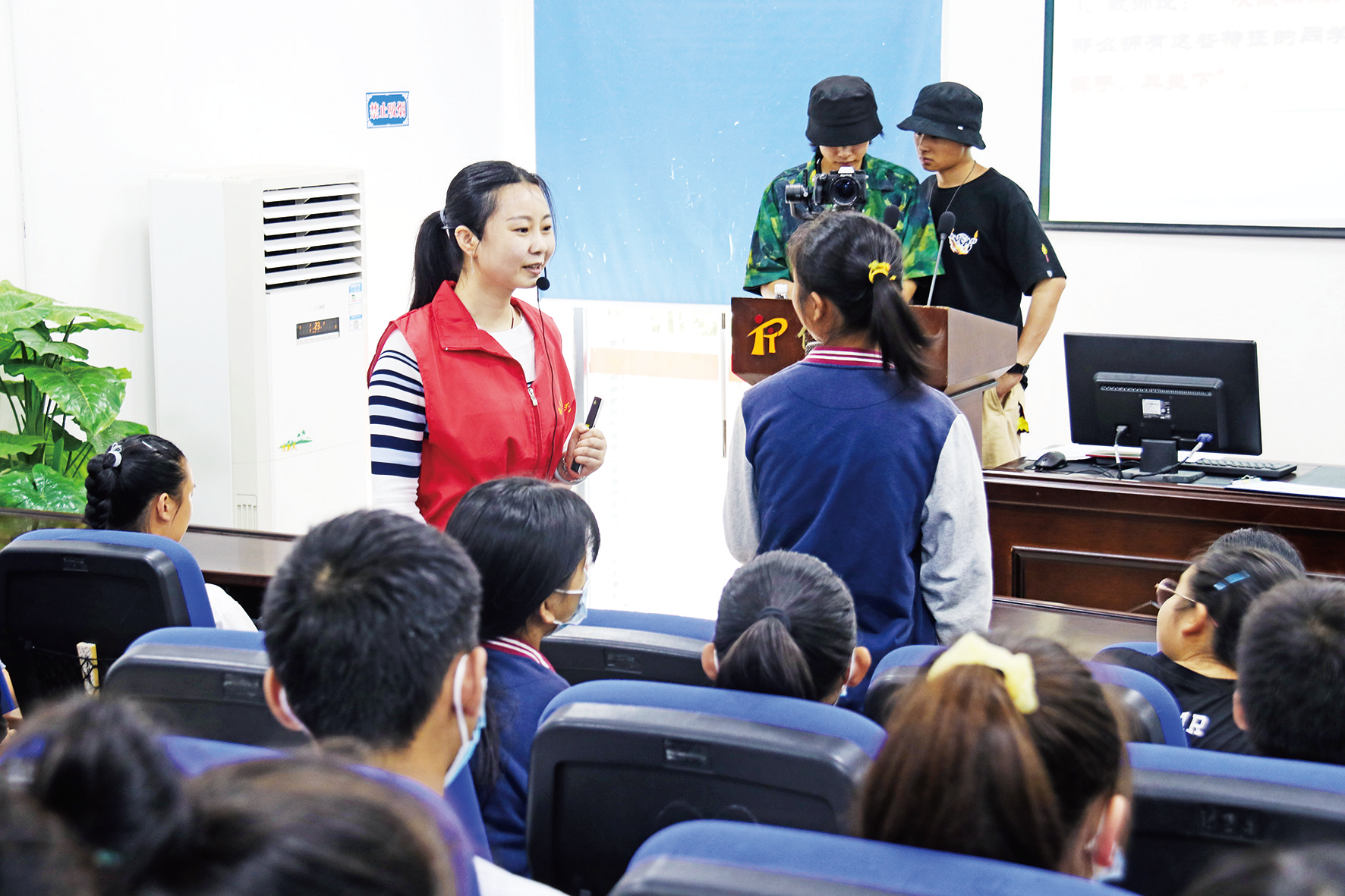 讲座中,志愿者结合近年来全国各地发生的典型案例,分别就“什么是性侵害”“如何防范性侵害”“如何远离性侵害”等问题,为师生们进行宣讲;通过播放动画小短片和现场互动的方式,让孩子们掌握防性侵常识。