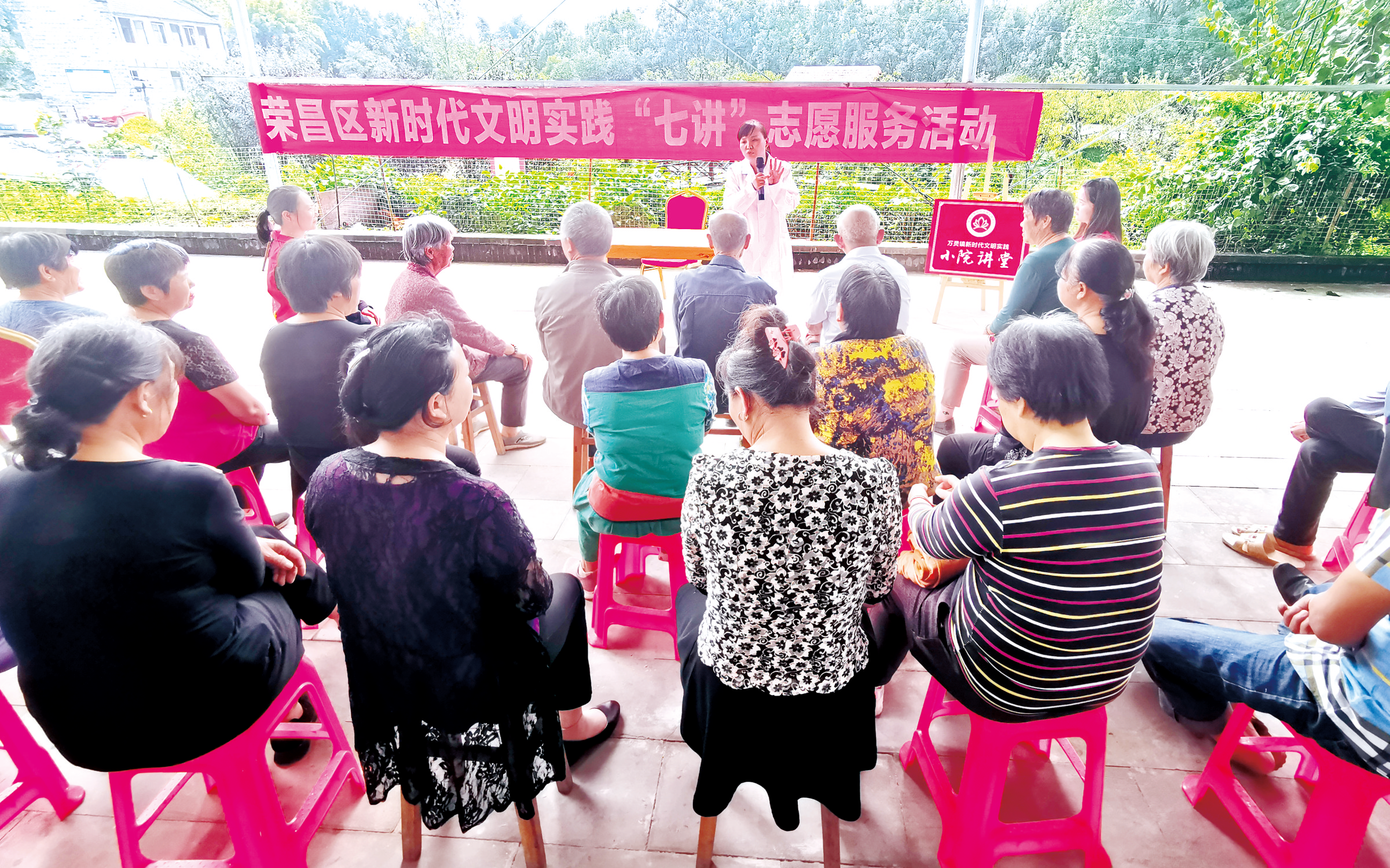 近日,我区新时代文明实践中心“小院讲堂”开展“七讲”志愿服务活动,来自重医附属永川医院的志愿者们走进广顺街道黄家冲村、万灵镇尚书村,用接地气的语言为村民普及健康知识。