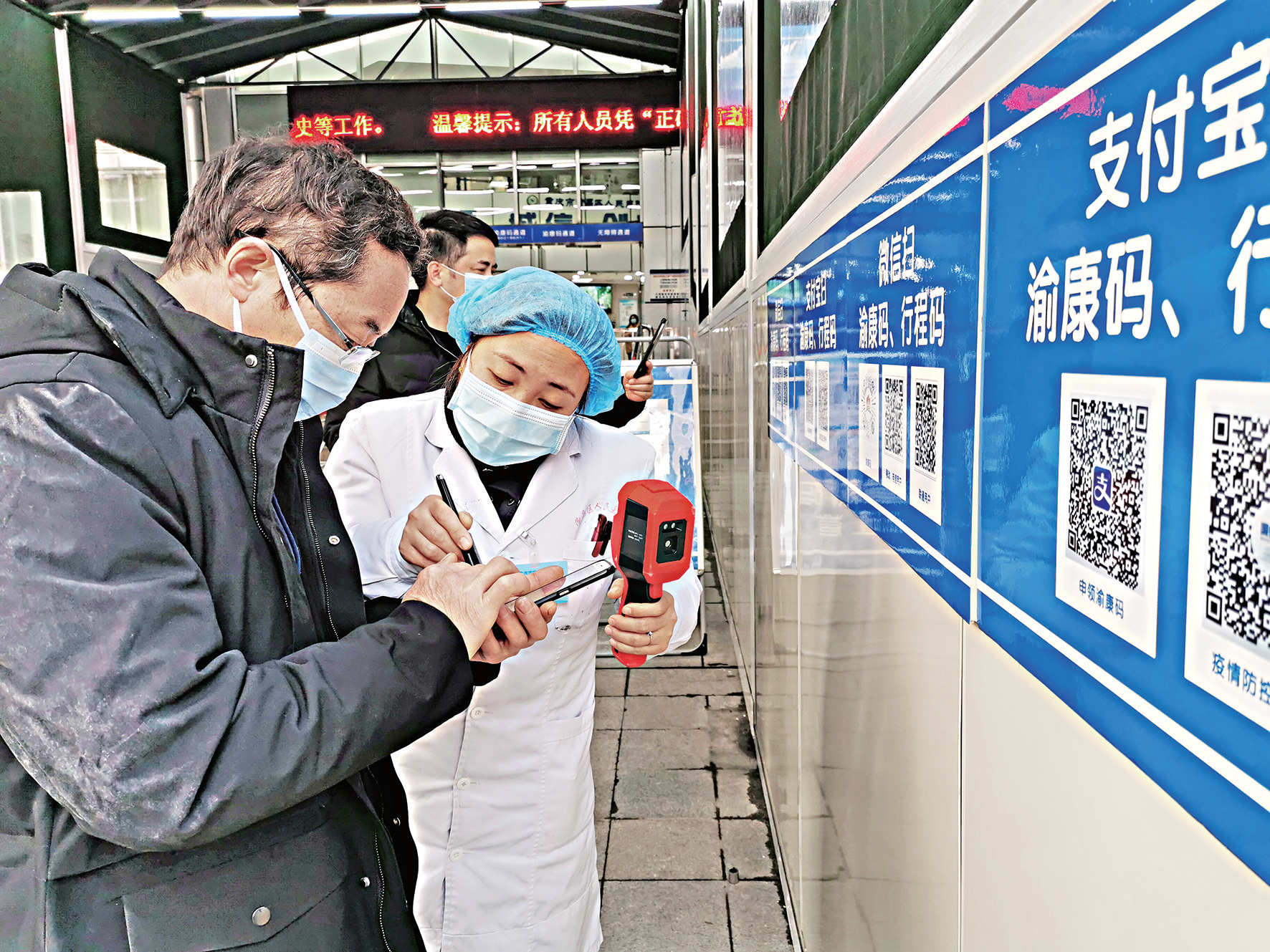 引导医院来访人员扫描健康码