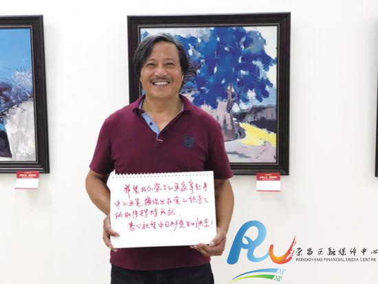 在荣昌区庆祝中国共产党成立100周年暨重庆三峡油画院油画作品展展厅,区美术家协会主席姜永久参观完画展后表示:“希望本土画家能够拿起手中的画笔,描绘出在党的领导下所取得辉煌成就,画出老百姓的幸福感。”