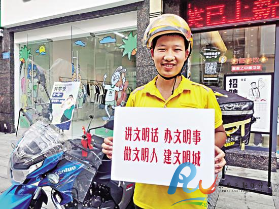 “我们送外卖经常在外面跑,首先须做到文明出行,骑车遵守交通规则,佩戴好头盔;同时在送餐时保持微笑、用语礼貌,将文明传递给每一个人。”外卖员李先君说,“只要每个人都争做文明的参与者和带头者,荣昌环境就一定能越来越美丽。”