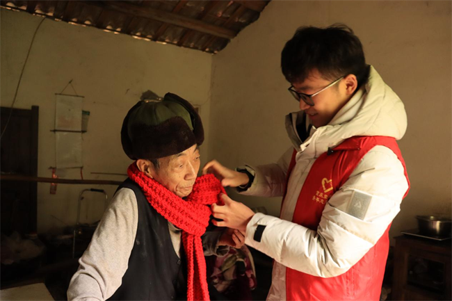 返荣大学生志愿者为空巢老人送上爱心围巾